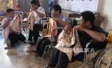 REPUBLIKA.CO.ID,MALANG -- Perajin batik menjelaskan tentang cara pembuatan batik teknik shibori kepada disabilitas dalam Festival Jelang Julang 2022 di Malang, Jawa Timur, Jumat (30/9/2022).