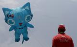 Warga menyaksikan layangan tiga dimensi saat penjurian pada Festival Layang-layang Internasional 2022 di Long Beach Area Selatan, Pakuwon City, Surabaya, Jawa Timur, Sabtu (1/10/2022). Festival yang diikuti 92 peserta dari berbagai daerah di Indonesia serta dari mancanegara yakni Swedia, Polandia, Jepang, dan Singapura tersebut memperlombakan kategori layang-layang dua dimensi, layang-layang tiga dimensi, dan layang-layang rangkaian/train bukan naga. (FOTO : ANTARA/Moch Asim)