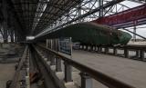 Pekerja berada di bawah rangkaian gerbong Kereta Cepat Jakarta-Bandung di Depo KCIC Tegalluar, Bandung, Jawa Barat, Sabtu (1/10/2022). PT Kereta Cepat Indonesia China (KCIC) akan melaksanakan uji dinamis Kereta Cepat Jakarta-Bandung pada November 2022.  (FOTO : ANTARA/Aprillio Akbar)