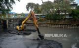 REPUBLIKA.CO.ID, JAKARTA -- Petugas Suku Dinas Sumber Daya Air (SDA) Jakarta Pusat mengoperasikan alat berat untuk mengeruk endapan lumpur saat masih berlangsungnya program Gerebek Lumpur di Kali Cideng, Jakarta, Ahad (2/10/2022). Panjang wilayah Kali Cideng yang dikeruk tersebut sekitar 490 meter dengan target 7.000 meter kubik lumpur.