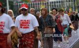 REPUBLIKA.CO.ID, JAKARTA -- Sejumlah peserta mengikuti fashion show Batik on the Street saat pelaksanaan Hari Bebas Kendaraan Bermotor (HBKB) di Jalan Jenderal Sudirman, Jakarta, Ahad (2/10/2022).
