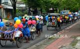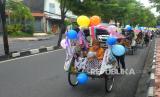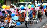 Puluhan becak kayuh hias mewarnai peringatan HUT ke-266 Kota Yogyakarta..