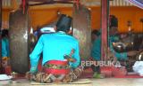 REPUBLIKA.CO.ID,YOGYAKARTA -- Abdi Dalem Keraton Yogyakarta menabuh Gamelan Sekati di Pagongan Masjid Gedhe Kauman, Yogyakarta, Senin (3/10/2022).