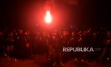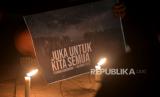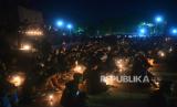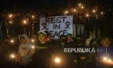 REPUBLIKA.CO.ID, KLATEN -- Anggota Aliansi Suporter Klaten mengadakan aksi solidaritas doa bersama untuk korban jiwa tragedi Stadion Kanjuruhan di Monumen Juang 45, Klaten, Jawa Tengah, Senin (3/10/2022) malam.