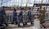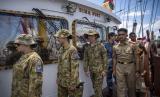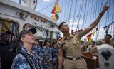 REPUBLIKA.CO.ID,DARWIN -- Taruna Akademi Angkatan Laut (AAL) Tingkat III Angkatan ke-69 memberikan penjelasan tentang KRI Bima Suci-945 kepada Australia Defence Force (ADF) Cadets di pelabuhan Forst Hill Wharf Darwin, Darwin, Australia, Selasa (4/10/2022).