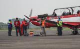 REPUBLIKA.CO.ID,JAKARTA -- Penerbang tim flypast pesawat Jupiter Aerobatic memeriksa baling-baling di Lanud Halim Perdanakusuma, Jakarta, Rabu (5/10/2022).