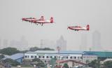 Tim flypast pesawat Jupiter Aerobatic terbang menuju Istana Merdeka di Lanud Halim Perdanakusuma, Jakarta, Rabu (5/10/2022). Dalam rangka HUT TNI ke-77 Angkatan Udara menyiapkan penampilan flypast Tim Jupiter Aerobatic, flypast pesawat tempur F-16 dan helikopter Tri Matra Flight membawa bendera merah putih yang akan melintas di langit Istana Merdeka. (FOTO : ANTARA/Asprilla Dwi Adha)