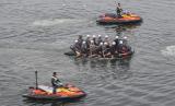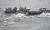 Sejumlah prajurit TNI dan Polri serta sipil mengapung di air tanpa berpindah tempat (Water Trappen) membentuk tulisan (FOTO : ANTARA/M Risyal Hidayat)