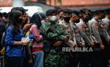 Petugas TNI dan Kepolisian berjaga saat pelimpahan perkara kasus pembunuhan berencana Brigadir J di Kejakasaan Agung, Jakarta, Rabu (5/10/2022). Penyidik Bareskrim Polri menyerahkan 11 tersangka dan barang bukti kepada Kejaksaan Agung dalam pelimpahan tahap dua perkara pembunuhan berencana Brigadir J dan penghalangan penyidikan yang menjerat Mantan Kadiv Propam Polri Irjen Ferdy Sambo dan istirnya Putri Candrawathi. (FOTO : Republika/Thoudy Badai)