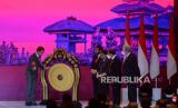 Presiden Joko Widodo (kiri) memukul gong didampingi Ketua Mahkamah Konstitusi (MK) Anwar Usman (kedua kiri), Special Representative of the Venice Commission Gianni Buquicchio (kanan), Menteri Luar Negeri Retno Marsudi (tengah) dan Gubernur Bali Wayan Koster (kedua kanan) saat Pembukaan Kongres ke-5 the World Conference on Constitustional Justice (WCCJ) di Nusa Dua, Badung, Bali, Rabu (5/10/2022). Kongres kelima peradilan konstitusi sedunia yang mengambil tema (FOTO : ANTARA/Fikri Yusuf)