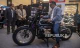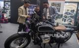 Gubernur Jawa Barat Ridwan Kamil (kanan) melihat motor listrik RKG-5000 karya desain Ridwan Kamil berkolaborasi dengan pabrikan Gesits seusai menghadiri West Java Investment Summit 2022 yang bertujuan untuk menawarkan proyek investasi. (FOTO : ANTARA/M Agung Rajasa)