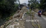 Jalan ambles serta tebing longsor akibat hujan deras mengganggu akses warga..
