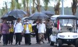 Presiden Joko Widodo (tengah) didampingi Menko Bidang Kemaritiman dan Investasi Luhut Binsar Pandjaitan (ketiga kiri), Menteri Pekerjaan Umum dan Perumahan Rakyat (PUPR) Basuki Hadimuljono (ketiga kanan), Menteri Luar Negeri Retno Marsudi (kiri), Gubernur Bali Wayan Koster (kanan) dan Koordinator Tim Asistensi dan Kemitraan Kepanitiaan Nasional Presidensi G20 Wishnutama Kusubandio (kedua kanan) meninjau kawasan mangrove Taman Hutan Raya (Tahura) Ngurah Rai, Denpasar, Bali, Kamis (6/10/2022). Peninjauan itu dilakukan untuk memastikan kesiapan kawasan mangrove Tahura Ngurah Rai sebagai salah satu lokasi kegiatan Konferensi Tingkat Tinggi (KTT) G20 di Bali pada 15-16 November mendatang. (FOTO : ANTARA/Fikri Yusuf)