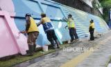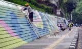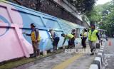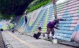 REPUBLIKA.CO.ID, BANDUNG -- Setelah beberapa waktu lalu tembok penahan tanah (TPT) Jalan Babakan Siliwangi, Kota Bandung kembali dipenuhi coretan aksi vandalisme, petugas Dinas Sumber Daya Air dan Bina Marga kembali membersihkannya dengan mengecatnya dengan cat warna warni, Kamis (6/10).