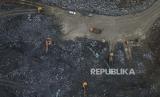 Foto udara aktivitas pertambang di Gunung Pangajar, Desa Karanglayung, Kabupaten Tasikmalaya, Jawa Barat, Kamis (6/10/2022). Kementerian PUPR melalui BBWS Citanduy merencanakan reklamasi tambang Gunung Pangajar menjadi embung air atau tempat penyimpanan air hujan setelah pembangunan Bendungan Leuwikeris rampung pada tahun 2023 mendatang dan diharapkan menjadi kawasan wisata baru guna mendorong pertumbuhan ekonomi setempat. (FOTO : ANTARA/Adeng Bustomi)