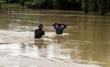 Warga melewati banjir di Desa Mesjid Pirak, Kecamatan Matang Kuli, Aceh Utara, Aceh, Jumat (7/10/2022). Badan Penanggulangan Bencana Daerah (BPBD) menyebutkan banjir yang sebelumnya melanda 12 kecamatan meluas ke 14 kecamatan di Aceh Utara menyusul hujan intensitas sedang hingga lebat terus terjadi ditambah air kiriman dari wilayah hulu Takengon, Aceh Tengah dan Kabupaten Bener Meriah, sebanyak 38 ribu lebih warga mengungs (FOTO : ANTARA/Rahmad)