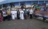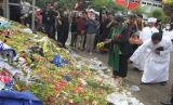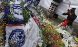 REPUBLIKA.CO.ID, MALANG -- Sejumlah anggota komunitas lintas agama menaburkan bunga usai doa bersama di tugu singa Stadion Kanjuruhan, Malang, Jawa Timur, Jumat (7/10/2022). Doa bersama tersebut dilakukan untuk mendoakan 131 korban meninggal dunia saat tragedi Kanjuruhan.