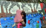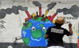 REPUBLIKA.CO.ID, BOGOR -- Warga dari Komunitas Penyanyi Jalanan (KPJ) Kota Bogor menyelesaikan pembuatan mural bertema lingkungan di Kampung Warga Mulya RT02/03, Kelurahan Sukasari, Kota Bogor, Jawa Barat, Jumat (7/10/2022).
