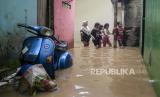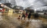 Akibatnya ratusan rumah dari enam RT, kelurahan Rawajati terendam banjir dengan ketinggian dari 30 sentimeter hingga dua meter. Republika/Putra M