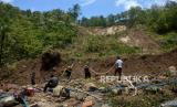 REPUBLIKA.CO.ID, KEBUMEN -- Warga bergotong-royong menyingkirkan material longsoran yang menutupi Sungai Kedung Jaha di Wadasmalang, Karangsambung, Kebumen, Jawa Tengah, Senin (10/10/2022).