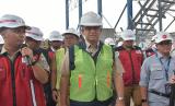 Gubernur DKI Jakarta Anies Baswedan (tengah) meninjau fasilitas pengolahan sampah Landfill Mining dan RDF Plant di Tempat Pembuangan Sampah Terpadu (TPST) di Bantargebang, Bekasi, Jawa Barat, Senin (10/10/2022). Pada kunjungannya Anies Baswedan meninjau sarana pendukung di tempat pengolahan sampah tersebut yang progres pembangunanannya saat ini telah mencapi 83 persen dan ditargetkan selesai pada bulan Desember 2022. (FOTO : ANTARA/Fakhri Hermansyah)