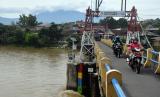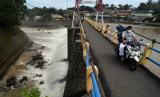 REPUBLIKA.CO.ID, BOGOR -- Pengendara motor melintas di atas jembatan Bendung Katulampa, Kota Bogor, Jawa Barat, Senin (10/10/2022). Tingginya intensitas curah hujan di kawasan Puncak dan Bogor pada Ahad (9/10/2022) menyebabkan debit air di Bendung Katulampa mengalami peningkatan yakni mencapai 220 cm atau siaga 1 banjir untuk warga yang berada di bantaran sungai Ciliwung.