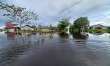REPUBLIKA.CO.ID,KAYONG -- Suasana permukiman masyarakat yang terendam banjir di Desa Sedahan Jaya, Kecamatan Sukadana, Kabupaten Kayong Utara, Kalimantan Barat, Senin (10/10/2022).