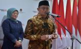 Menteri Koordinator Bidang Pembangunan Manusia dan Kebudayaan Muhadjir Effendy memberikan keterangan usai penandatanganan Surat Keputusan Bersama (SKB) Libur Nasional dan Cuti Bersama 2023 di Kantor Kemenko PMK, Jakarta, Selasa (11/10/2022). Pemerintah resmi menetapkan hari libur nasional dan cuti bersama tahun 2023 sebanyak 24 hari, yang terdiri dari libur nasional sebanyak 16 hari dan cuti bersama sebanyak 8 hari. (FOTO : Republika/Prayogi)