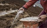 REPUBLIKA.CO.ID, JAKARTA -- Petani menabur pupuk di lahan pertanian di kawasan Cimenyan, Kabupaten Bandung, Selasa (11/10/2022).