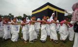 Sejumlah siswa Taman Kanak-kanak (TK) mengikuti peragaan manasik haji di lapangan Tegar Beriman, Cibinong, Kabupaten Bogor, Jawa Barat, Selasa (11/10/2022). Peragaan manasik haji yang digelar oleh Ikatan Guru Taman Kanak-kanak Indonesia (IGTKI) Kabupaten Bogor itu bertujuan untuk mengenalkan proses menunaikan ibadah haji sejak usia dini. (FOTO : ANTARA/Yulius Satria Wijaya)
