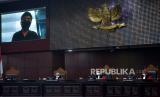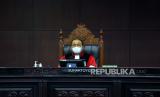 Hakim Konstitusi Suhartoyo memimpin jalannya sidang uji Undang-Undang Nomor 7 Tahun 2017 tentang Pemilihan Umum di Gedung Mahkamah Konsitusi, Jakarta, Selasa (11/10/2022). Sidang tersebut beragendakan pemeriksaan pendahuluan dengan pemohon yaitu Leonardo Siahaan.Prayogi/Republika. (FOTO : Republika/Prayogi)