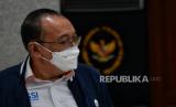 Direktur Utama PT Liga Indonesia Baru (LIB) Akhmad Hadian Lukita seusai memenuhi panggilan Tim Gabungan Independen Pencari Fakta (TGIPF) untuk dimintai klarifikasi di Gedung Kemenko Polhukam, Jakarta, Selasa (11/10/2022). Dalam keterangannya, Akhmad Hadian Lukita menegaskan akan bertanggung jawab atas tragedi Kanjuruhan yang menewaskan sebanyak 132 orang. Republika/Thoudy Badai (FOTO : Republika/Thoudy Badai)