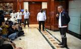 Direktur Utama PT Liga Indonesia Baru (LIB) Akhmad Hadian Lukita berjalan keluar seusai memenuhi panggilan Tim Gabungan Independen Pencari Fakta (TGIPF) untuk dimintai klarifikasi di Gedung Kemenko Polhukam, Jakarta, Selasa (11/10/2022). Dalam keterangannya, Akhmad Hadian Lukita menegaskan akan bertanggung jawab atas tragedi Kanjuruhan yang menewaskan sebanyak 132 orang. (FOTO : Republika/Thoudy Badai)