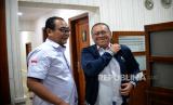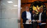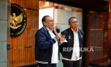 Direktur Utama PT Liga Indonesia Baru (LIB) Akhmad Hadian Lukita (kiri) didampingi Direktur Operasional PT LIB, Sudjarno (kanan) berjalan keluar seusai memenuhi panggilan Tim Gabungan Independen Pencari Fakta (TGIPF) untuk dimintai klarifikasi di Gedung Kemenko Polhukam, Jakarta, Selasa (11/10/2022). Dalam keterangannya, Akhmad Hadian Lukita menegaskan akan bertanggung jawab atas tragedi Kanjuruhan yang menewaskan sebanyak 132 orang. Republika/Thoudy Badai (FOTO : Republika/Thoudy Badai)