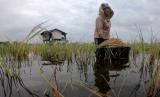 REPUBLIKA.CO.ID, JAMBI -- Petani membawa padi hasil panen di sawah yang terendam banjir luapan Sungai Batanghari di Jambi Timur, Jambi, Rabu (12/10/2022).