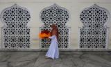 REPUBLIKA.CO.ID, BANDA ACEH -- Tenaga pendidik dari Taman Kanak-Kanak (TK) membawa hidang pada kenduri maulid akbar Nabi Muhammad SAW di halaman Masjid Raya Baiturrahman, Banda Aceh, Aceh, Rabu (12/10/2022).
