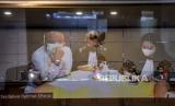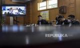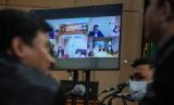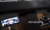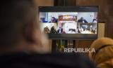 REPUBLIKA.CO.ID,BANDUNG -- Tampilan layar menampilkan terdakwa kasus korupsi pengadaan barang, jasa dan lelang jabatan di lingkungan Pemerintah Kota Bekasi serta gratifikasi Rahmat Effendi saat sidang vonis secara daring di Pengadilan Tipikor Bandung, Jalan LLRE Martadinata, Kota Bandung, Rabu (12/10/2022).