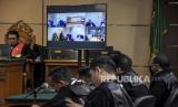 Tampilan layar menampilkan terdakwa kasus korupsi pengadaan barang, jasa dan lelang jabatan di lingkungan Pemerintah Kota Bekasi serta gratifikasi Rahmat Effendi saat sidang vonis secara daring di Pengadilan Tipikor Bandung, Jalan LLRE Martadinata, Kota Bandung, Rabu (12/10/2022). Majelis Hakim menjatuhkan vonis kepada Wali Kota Bekasi nonaktif Rahmat Effendi dengan hukuman 10 tahun penjara subsider enam bulan penjara dan denda Rp1 miliar serta pencabutan hak politik selama lima tahun setelah menjalani pidana pokok karena terbukti telah menerima gratifikasi dari sejumlah pihak. (FOTO : REPUBLIKA/ABDAN SYAKURA)