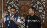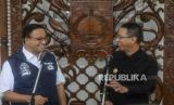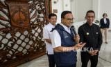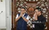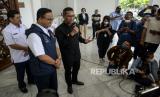 REPUBLIKA.CO.ID,JAKARTA -- Gubernur DKI Jakarta Anies Baswedan bersama Kepala Sekretariat Presiden yang juga Pj Gubernur DKI Jakarta terpilih Heru Budi Hartono usai melakukan pertemuan di Balai Kota Jakarta, Rabu (12/10/2022).