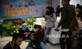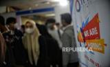 REPUBLIKA.CO.ID,JAKARTA -- Pencari kerja mengantre untuk mengunjungi stan sejumlah perusahaan saat kegiatan Jakarta Job Fair di Pusat Grosir Cililitan (PGC), Jakarta, Rabu (12/10/2022).