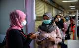 petugas memindai barcode peserta sebelum memasuki area bursa kerja Jakarta Job Fair di Pusat Grosir Cililitan (PGC), Jakarta, Rabu (12/10/2022). Sebanyak 5.000 lowongan pekerjaan dari 40 perusahaan ditawarkan dalam bursa kerja tersebut sebagai upaya penyerapan angka kerja dalam mengatasi pengangguran. Bursa kerja tersebut belangsung selama 2 hari dari tanggal 11-12 Oktober 2022 dengan jumlah pendaftar hingga 8.000 peserta. Republika/Thoudy Badai (FOTO : Republika/Thoudy Badai)
