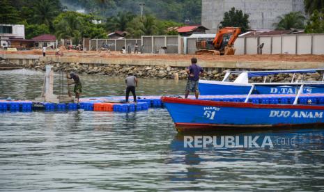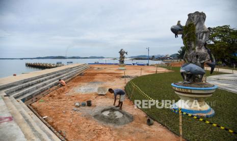 REPUBLIKA.CO.ID,SIBOLGA -- Sejumlah pekerja menyelesaikan pembangunan proyek lokasi wisata pantai di Pelabuhan Lama Sibolga, Sumatera Utara, Rabu (12/10/2022).