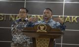 Komisioner Penyelidikan atau Pemantauan Komnas HAM  Mohammad Choirul Anam (kanan) bersama Koordinator Subkomisi Pemajuan HAM/Komisioner Pendidikan dan Penyuluhan Beka Ulung Hapsara (kiri) memberikan keterangan kepada media terkait hasil temuan awal Komnas HAM atas Tragedi Kemanusiaan Stadion Kanjuruhan di kantor Komnas HAM, Jakarta, Rabu (12/10/2022). Dalam keterangannya Komnas HAM menilai penyebab utama tragedi Kanjuruhan ialah penggunaan gas air mata.  (FOTO : ANTARA/Muhammad Adimaja)