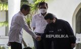 Presiden Joko Widodo (kiri) bersalaman dengan Menteri BUMN Erick Thohir (kanan) dan Menko Marves Luhut Binsar Pandjaitan (tengah) usai Peluncuran Vaksin IndoVac di PT Bio Farma (Persero), Jalan Pasteur, Kota Bandung, Kamis (13/10/2022). Presiden Joko Widodo secara resmi meluncurkan vaksin Covid-19 bernama IndoVac yang diproduksi oleh PT Bio Farma (Persero). Vaksin IndoVac tersebut mulai diproduksi secara massal pada Kamis (13/10/2022) dengan target mencapai 20 juta dosis dan akan meningkat 40 juta dosis pada tahun 2023. Republika/Abdan Syakura (FOTO : REPUBLIKA/ABDAN SYAKURA)