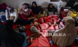 Warga terdampak bencana longsor saat mengungsi di Masjid Jami Nurul Ikhlas, Kota Bogor,Jawa Barat, Kamis (13/10/2022). Ratusan warga terdampak bencana longsor di Kampung Kebon Jahe diungsikan sementara di masjid tersebut untuk mengantisipasi terjadinya longsor susulan. Republika/Putra M. Akbar (FOTO : Republika/Putra M. Akbar)