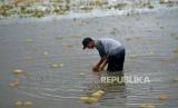 REPUBLIKA.CO.ID, YOGYAKARTA -- Warga mengambil buah melon yang masih layak konsumsi di Temon, Kulonprogo, Yogyakarta, Jumat (14/10/2022).
