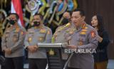 REPUBLIKA.CO.ID,JAKARTA -- Kapolri Jenderal Pol Listyo Sigit Prabowo menyampaikan keterangan pers terkait kasus yang melibatkan mantan Kapolda Sumatera Barat yang tengah berproses mutasi menjabat Kapolda Jawa Timur, Irjen Pol Teddy Minahasa di Rupatama Mabes Polri, Jakarta, Jumat (14/10/2022).