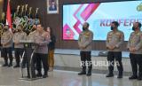 Kapolri Jenderal Pol Listyo Sigit Prabowo bersiap menyampaikan keterangan pers terkait kasus yang melibatkan mantan Kapolda Sumatera Barat Irjen Teddy Minahasa di Rupatama Mabes Polri, Jakarta, Jumat (14/10/2022). Kapolri Jenderal Listyo Sigit Prabowo telah mengonfirmasi bahwa Teddy Minahasa diduga terjerat dalam pusaran kasus narkoba serta kini telah ditahan dan menjalani penempatan khusus. Prayogi/Republika. (FOTO : Republika/Prayogi)