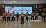 Kapolri Jenderal Pol Listyo Sigit Prabowo menyampaikan keterangan pers terkait kasus yang melibatkan mantan Kapolda Sumatera Barat Irjen Teddy Minahasa di Rupatama Mabes Polri, Jakarta, Jumat (14/10/2022). Kapolri Jenderal Listyo Sigit Prabowo telah mengonfirmasi bahwa Teddy Minahasa diduga terjerat dalam pusaran kasus narkoba serta kini telah ditahan dan menjalani penempatan khusus. (FOTO : Republika/Prayogi)