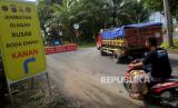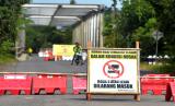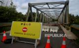 Rambu peringatan penutupan jembatan bagi kendaraan roda empat dipasang di Jembatan Glagah, Kulonprogo, Yogyakarta, Jumat (14/10/2022). Jembatan Glagah yang berada di ruas Jalur Jalan Lintas Selatan (JJLS) terpaksa ditutup karena rusak. Sementara untuk kendaraan roda dua masih bisa lewat. Dengan kondisi ini maka kendaraan roda empat dialihkan melalui Jalan Wates-Purworejo. (FOTO : Republika/Wihdan Hidayat)